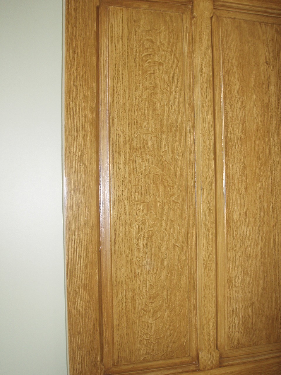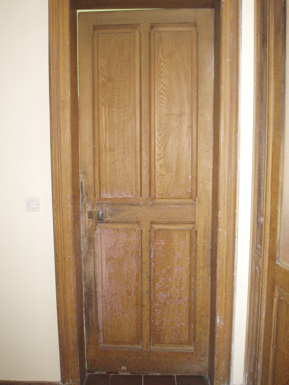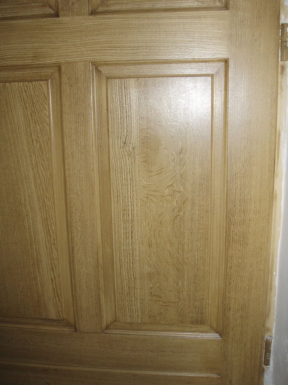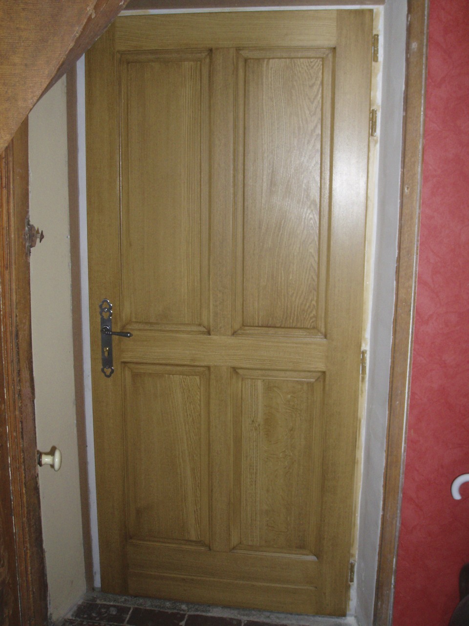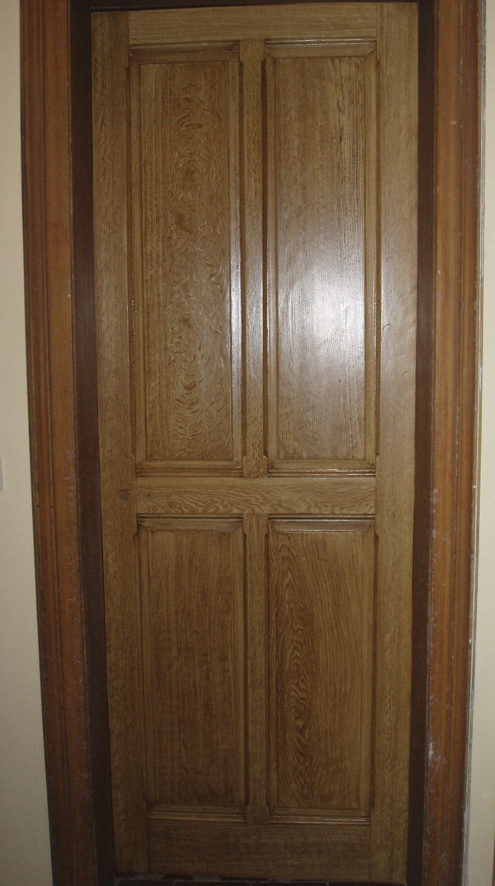 This wooden door in a country manor in Normandy had the original faux oak finish scratched away by the client’s dog. The existing faux oak panels were matched for a seamless result, much to the delight of the client. During renovations to the property an additional door was added which was also grained to complete the ensemble.