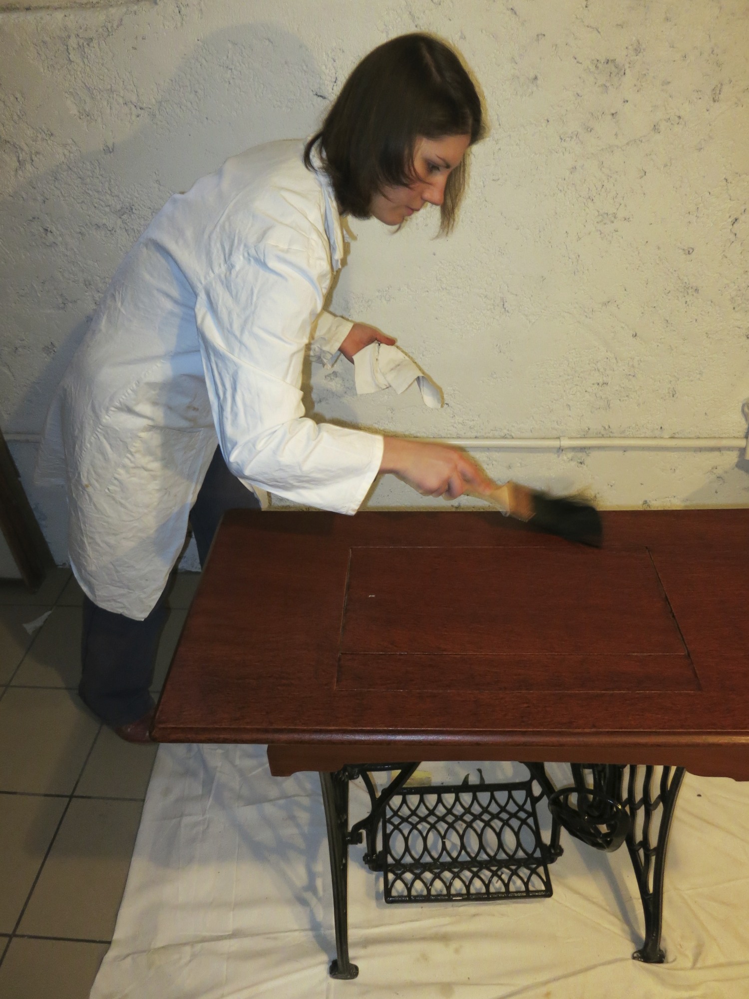 The beer glaze is an instant technique that produces realistic results, it can be tricky to apply to irregular surfaces as it dries fast and any touch-ups are visible. Once dry these two stages were fixed with a solvent-based varnish.