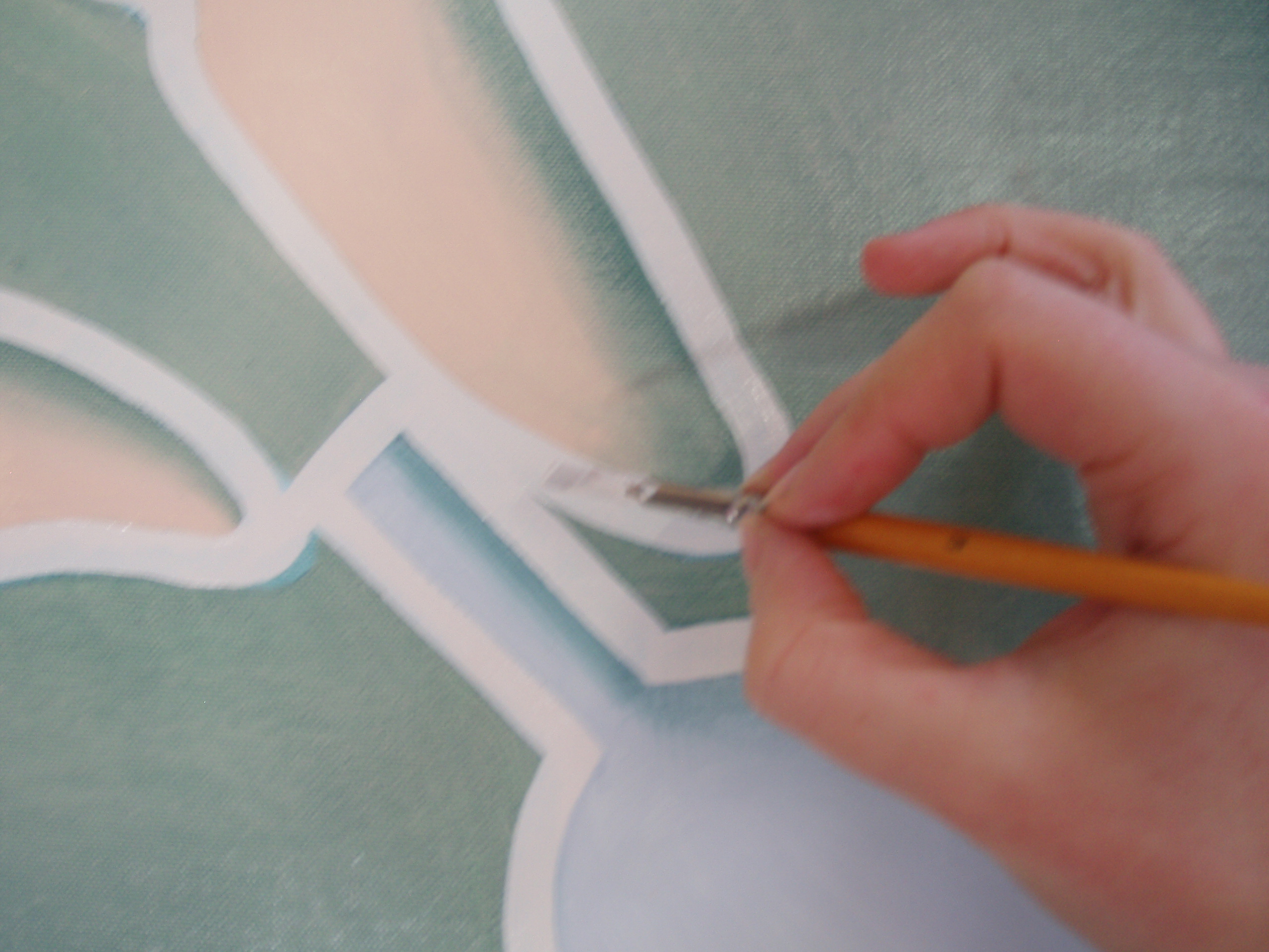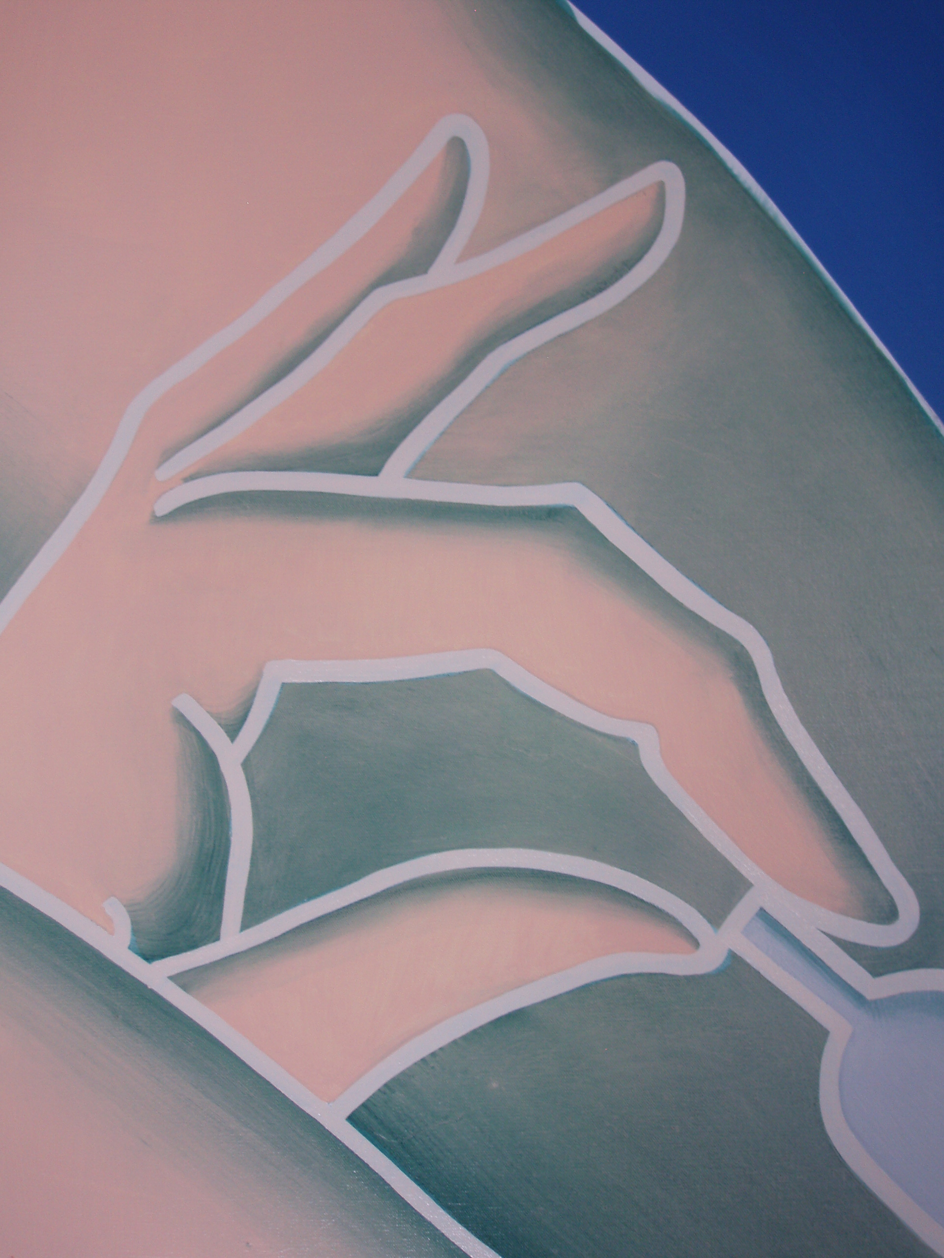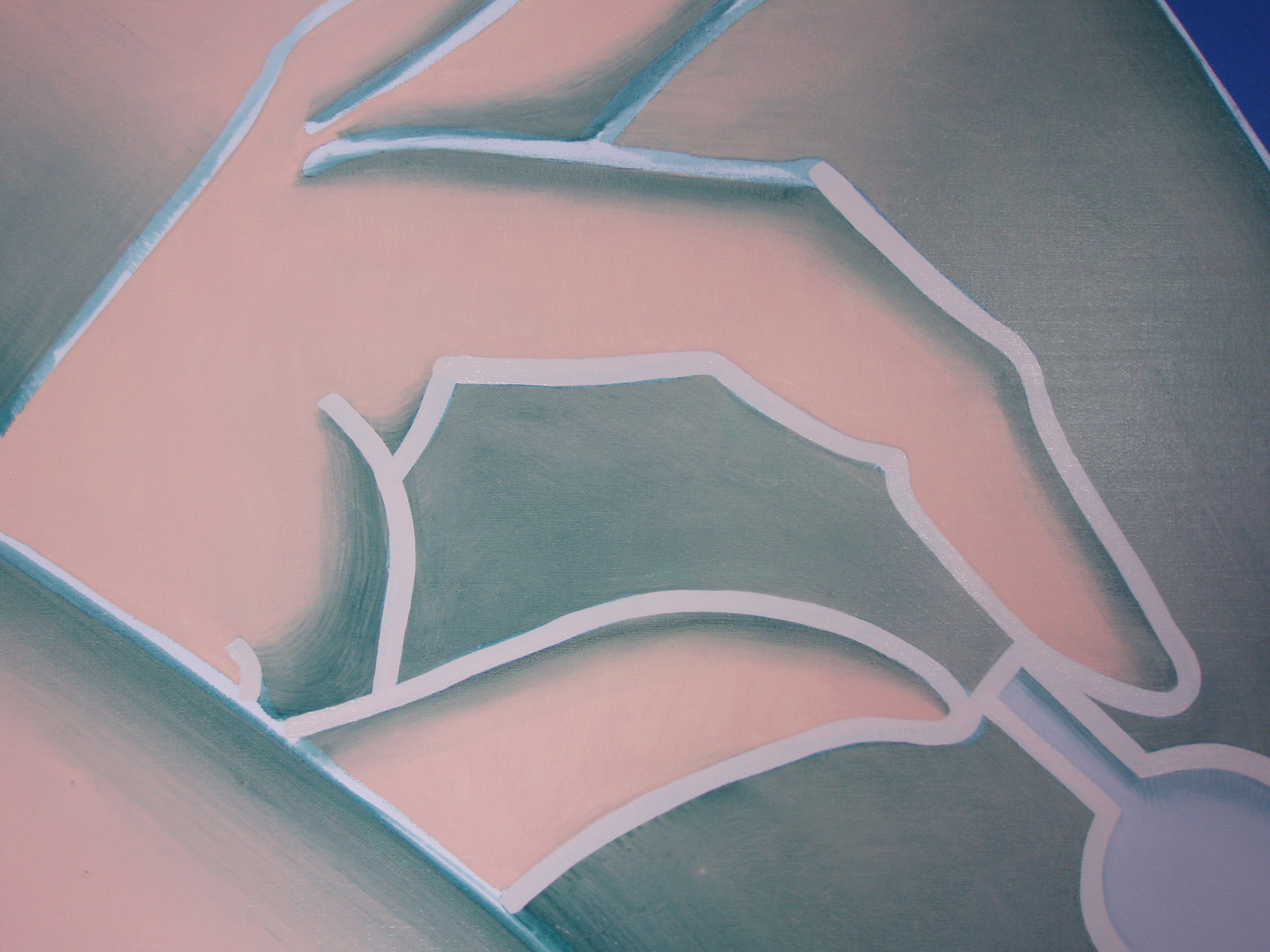 This time all of the pieces were rather graphic; solid colours and bold outlines. I was glad and honoured to be helping out on this project as one of my specialities is painting uniform lines with precision and achieving solid areas of colour with oil paints. I love the way the outlines make everything look so clean and finished in these paintings.