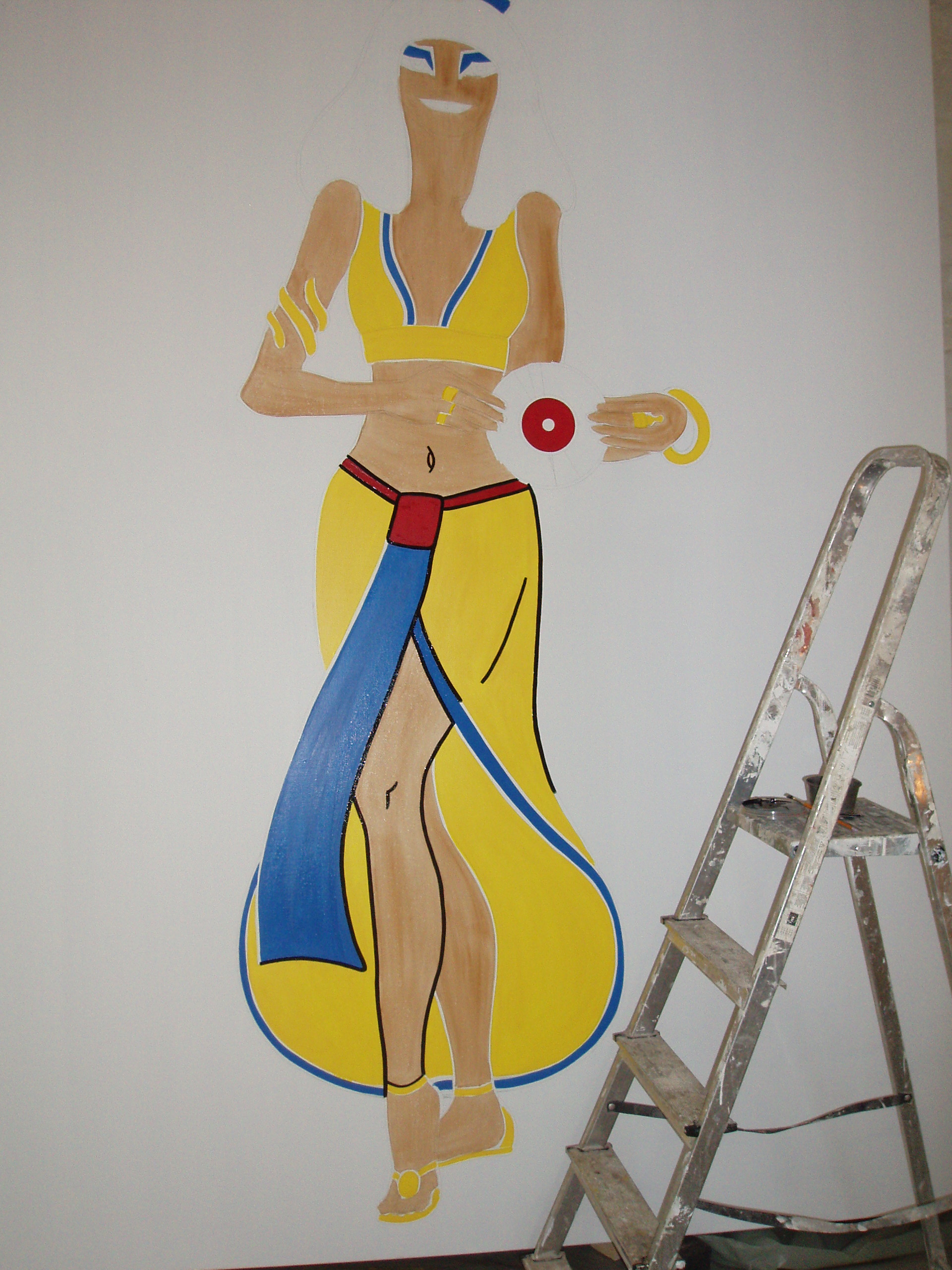 We painted a total of 6 canvases, the smallest measuring 2.8mx3.6m and the largest 2.8mx5.6m. These were some big paintings, but nothing can compare to the 9mx7m painting we did in the Ludwig Museum in Cologne, Germany! Here, the hardest part was maneuvering the paintings, just like sails on a large boat.