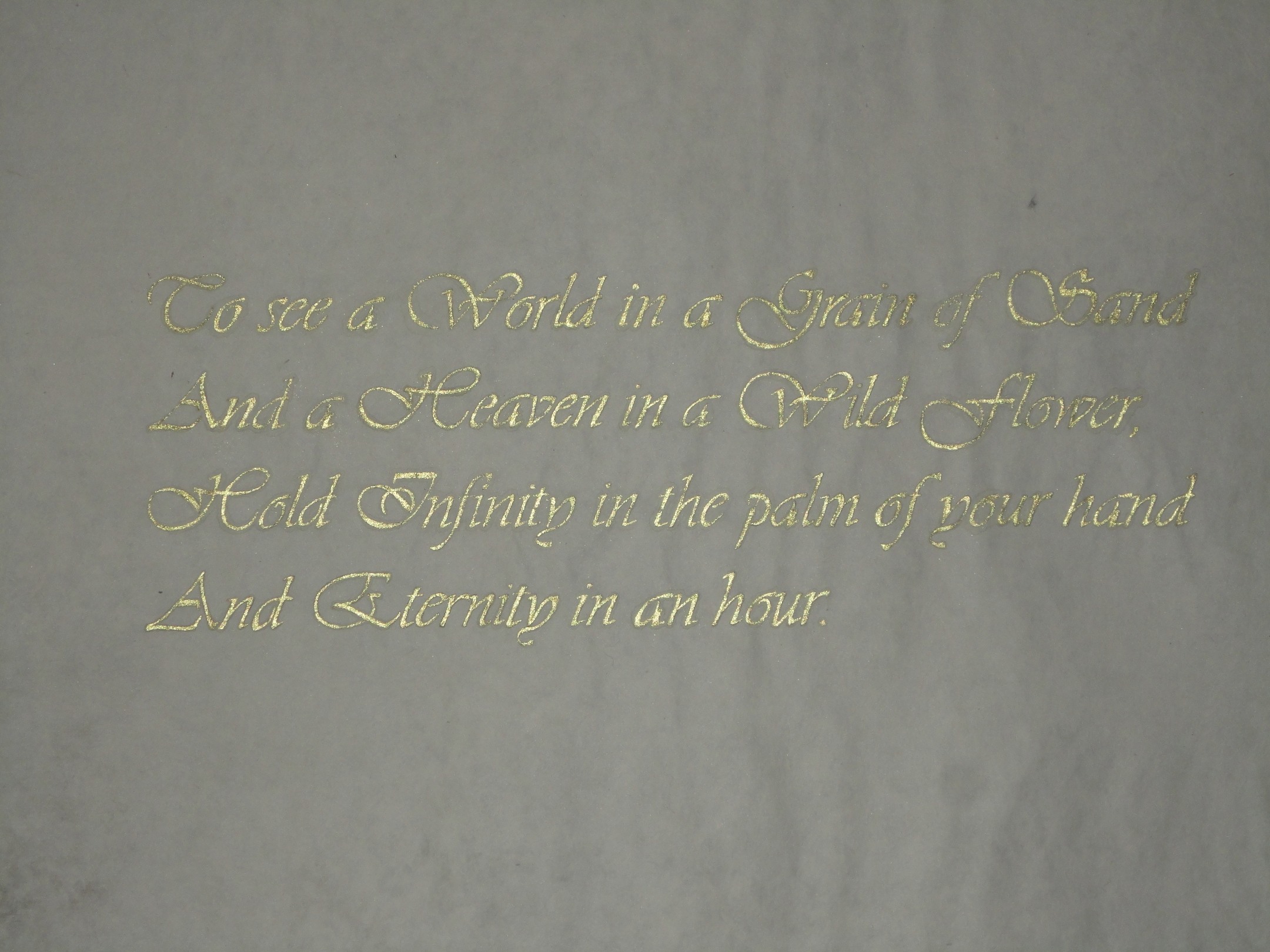 Blake Artworks William Blake William Blake – detail William Blake – detail Blake, 2011 Hand-painted lettering on hand-made flax and abaca paper 50cm x 70cm Related