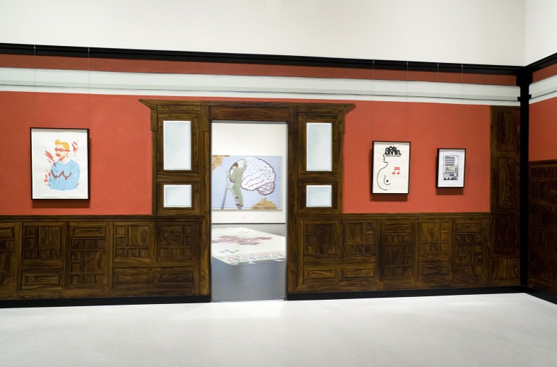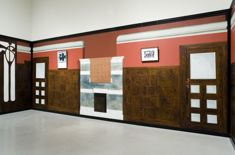 In 2008, I was contacted by Scottish artist Lucy McKenzie to assist on a large installation for the Museum of Modern Art in New York. The trompe l’oeil Art Nouveau interior involved the use of decorative painting techniques including wood graining and marbling. Reproducing these techniques on a rough surface for the first time proved to be a challenge; usually trompe l’oeils are painted on smooth surfaces, facilitating the creation of the desired faux effects. Here the techniques were specially adapted to accommodate the irregular, uneven texture of the canvas.